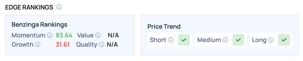 Benzinga Edge Rankings: According to Benzinga Edge Rankings, Rivian shows strong Momentum with a score of 83.64, though its Growth score lags at 31.61.
